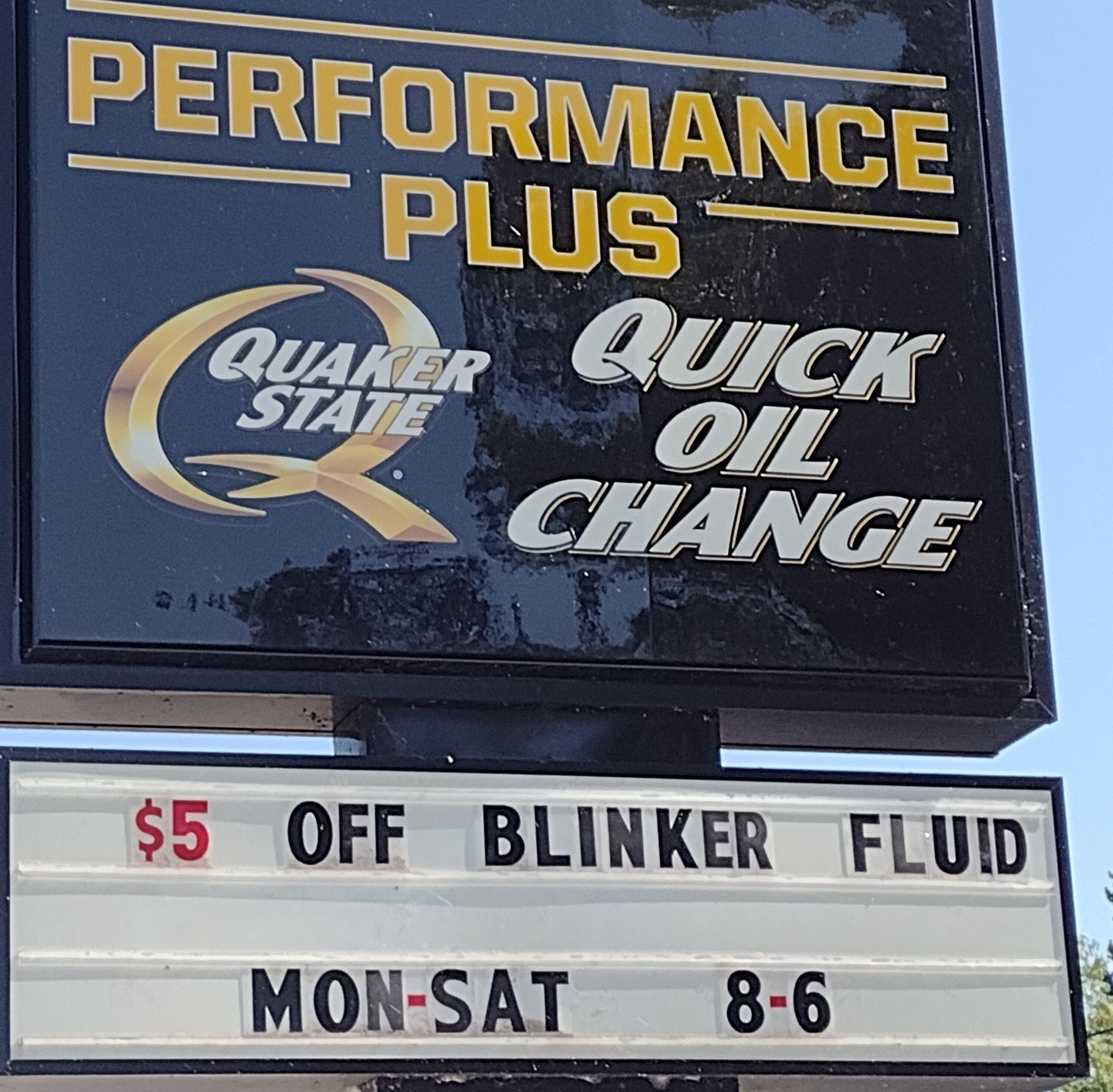 Years ago I ended up being behind a coworker as we drove to work. When we parked I told them they should refill their blinker fluid since their blinkers didn't appear to be working. Later that day they asked where to buy it because they couldn't find it at Autozone.
