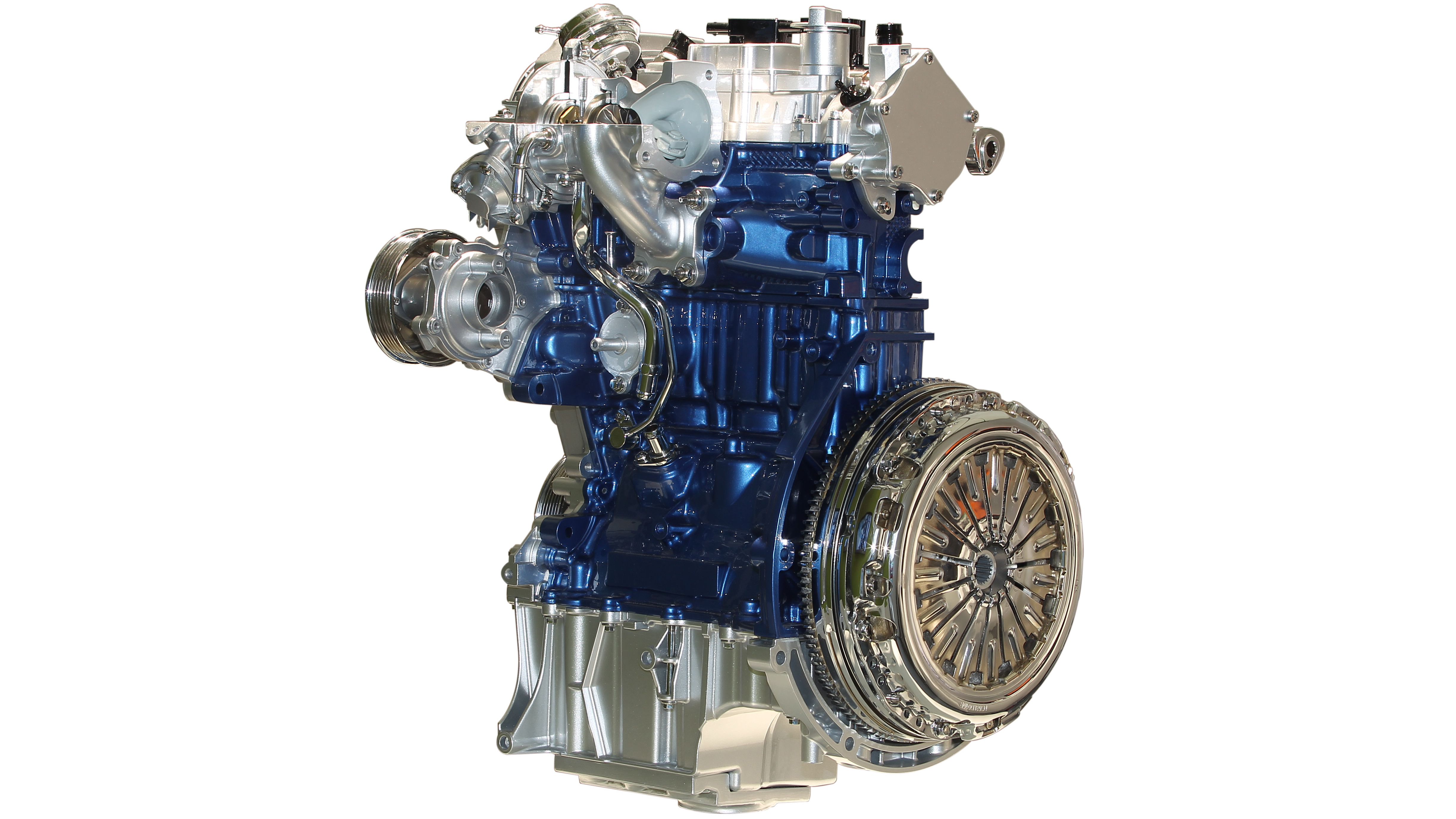 Here's an engine that's smaller than a bottle of soda you'd bring to your family barbecue, but that doesn't mean it's lacking. With three cylinders, the 1.0-liter EcoBoost engine is found in cars such as the Fiesta and features cylinder deactivation. You can get it with either 99, 123 or 138 HP.