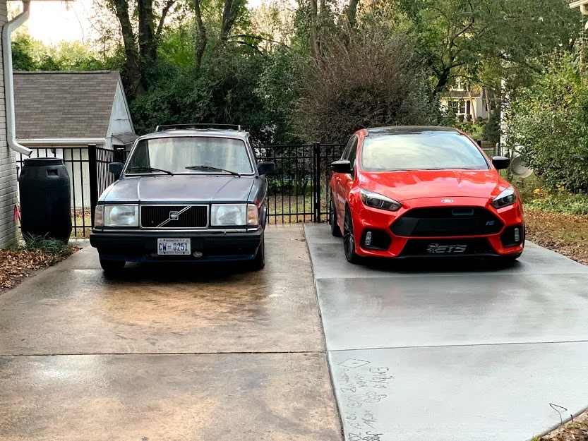 The Fiesta ST is the angry jellybean of Ford's lineup, but the Focus RS isn't unlike a bean. Anyway, this is approaching the perfect two-car garage.