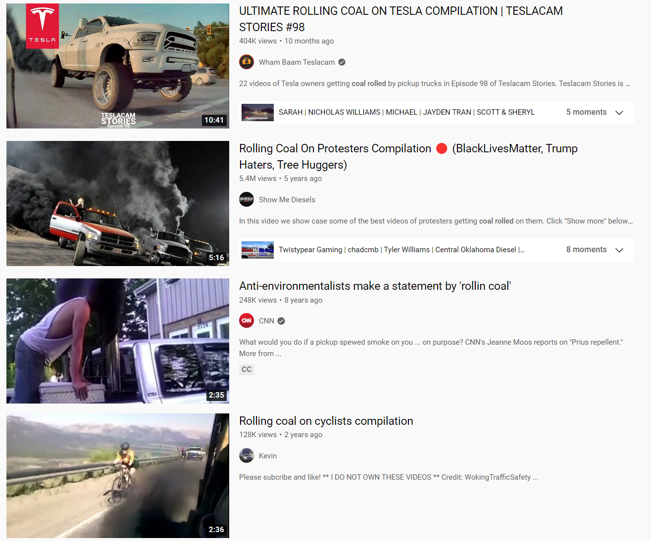 Rolling coal. Yes we get it, you hate the environment, Prius', and bicyclists. There's probably a bumper sticker for that.