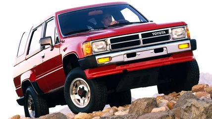The second generation Toyota 4Runner was quite different than the first, which is pictured at the top of this slideshow. The first-gen 4Runner was clearly based on the Toyota Hilux, and was basically a truck with a fiberglass top. The second-gen, however, got its own dedicated frame design, although it still resembled a Toyota truck. The frame was still hearty and stout and a two-door SUV was sold in the U.S. until the early '90s. The four-door overtook it in popularity quickly.