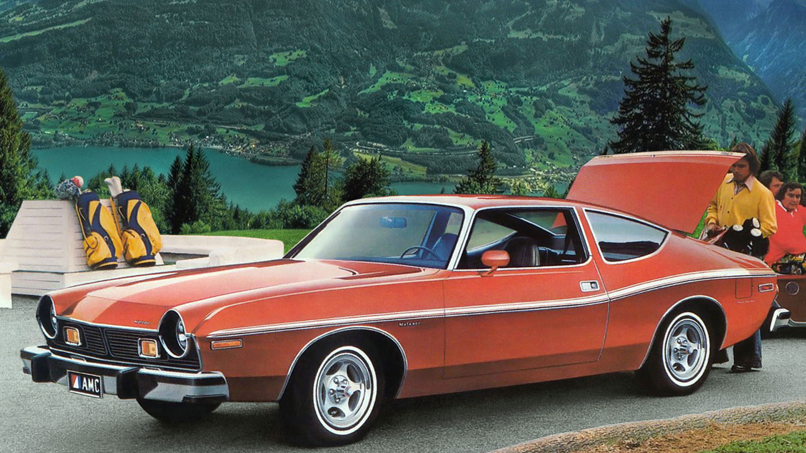 1974-78 AMC Matador coupe. A car that was conceived to improve its aerodynamics for the sake of NASCAR. Then, to make the car racier, they add... opera windows.