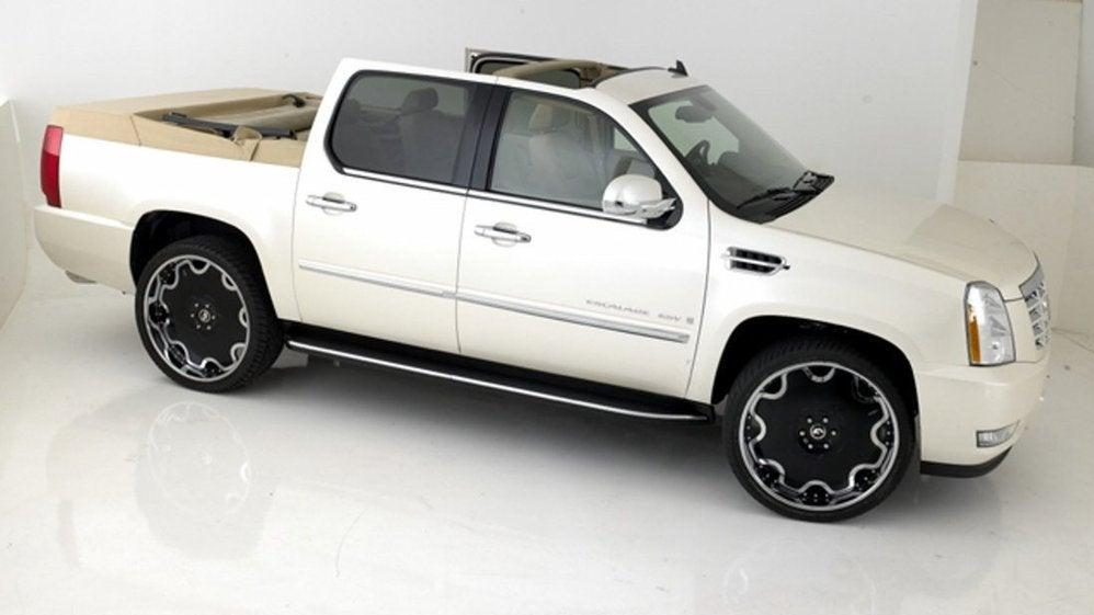 I wondered why many of the other conversions did away with the rear door window frames until I saw this. Leaving the full door frame on the rear doors makes this Escalade look like its pickup truck platform mate, the Chevy Silverado.