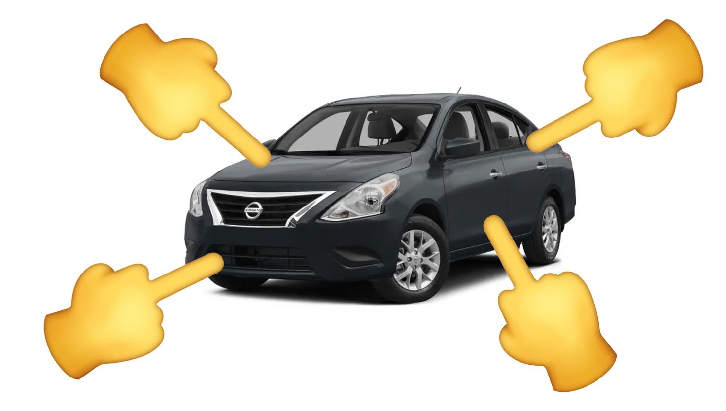 Normally, I don't like punching down to defecate upon really cheap cars, but there was something about the Versa's 2012 redesign into an awkward little sedan that irked me. Especially in Charcoal Gray.
