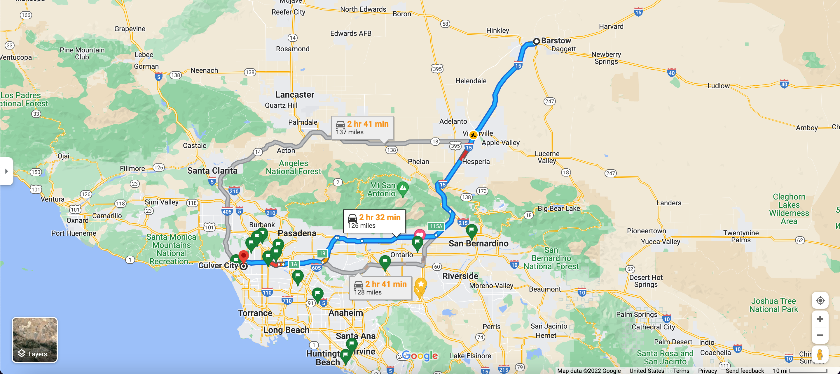 Barstow to Culver City: 252 Miles Roundtrip