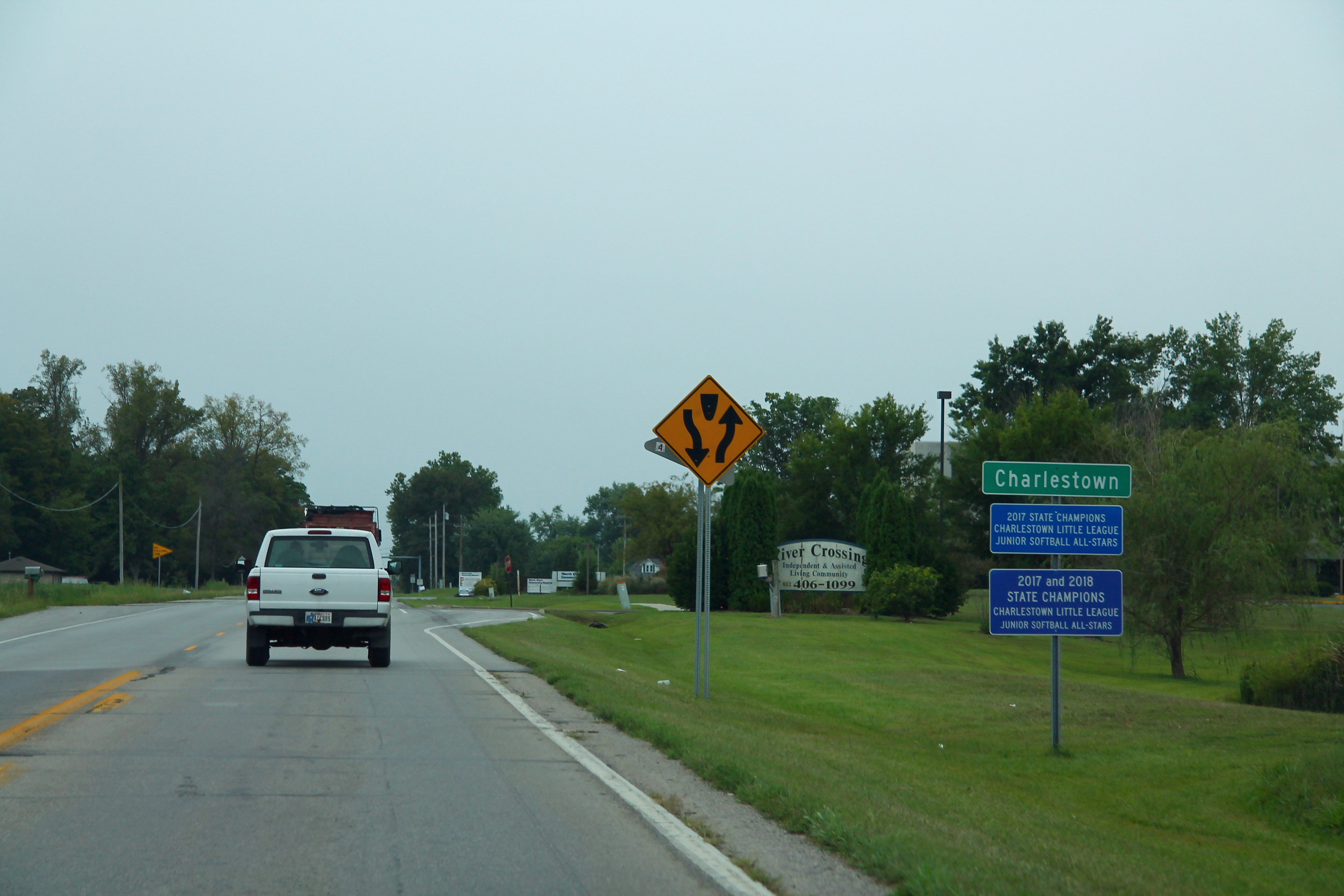 The northern half of the state is a series of ghost towns, meth labs, gun stores and adult novelty shops, but mostly cornfields with nowhere to stop, the southern half of the state is also cornfields and nowhere to stop. (It is prettier though). Hoosiers do not like you.