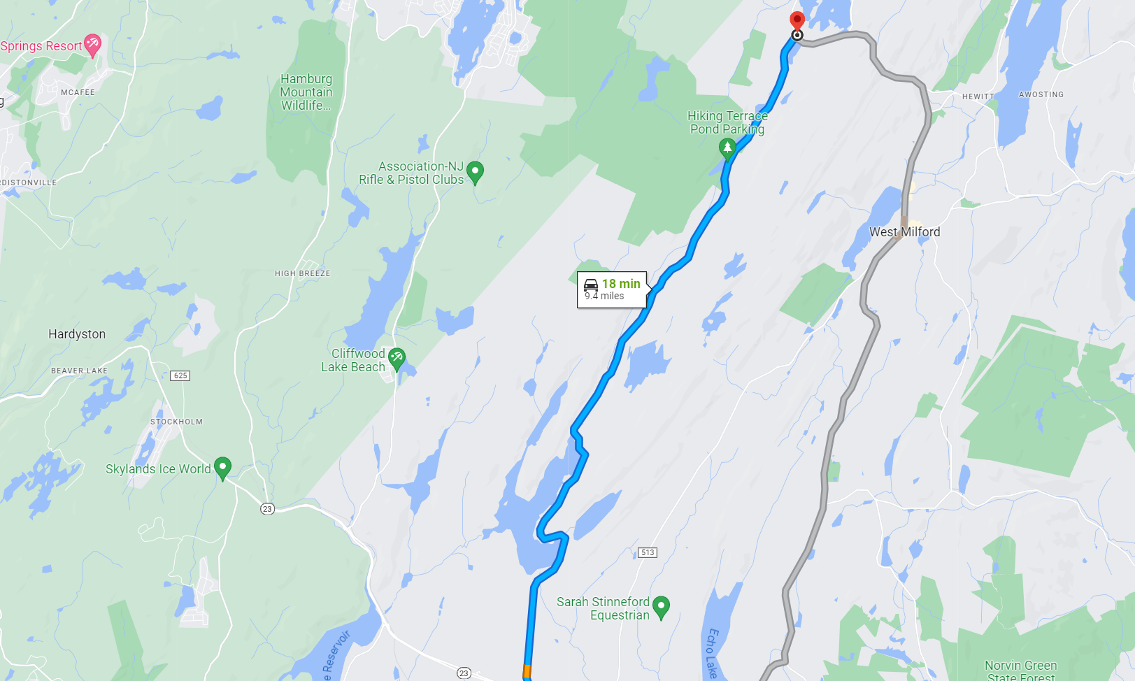 But to name ONE road, I actually will go with Clinton Rd, in West Milford (just into Passaic County, not Sussex). It runs through the woods around one side of the Clinton Reservoir and is just great...especially on a bike. Curvy, with enough straights to get your blood pumping, and a lovely atmosphere (not just scenery, but that enveloping feel of nature around you). They also freshly pave it every several years, so tends to be pretty decent. Whenever I take a bike for the day, I tend to hit that road at some point.