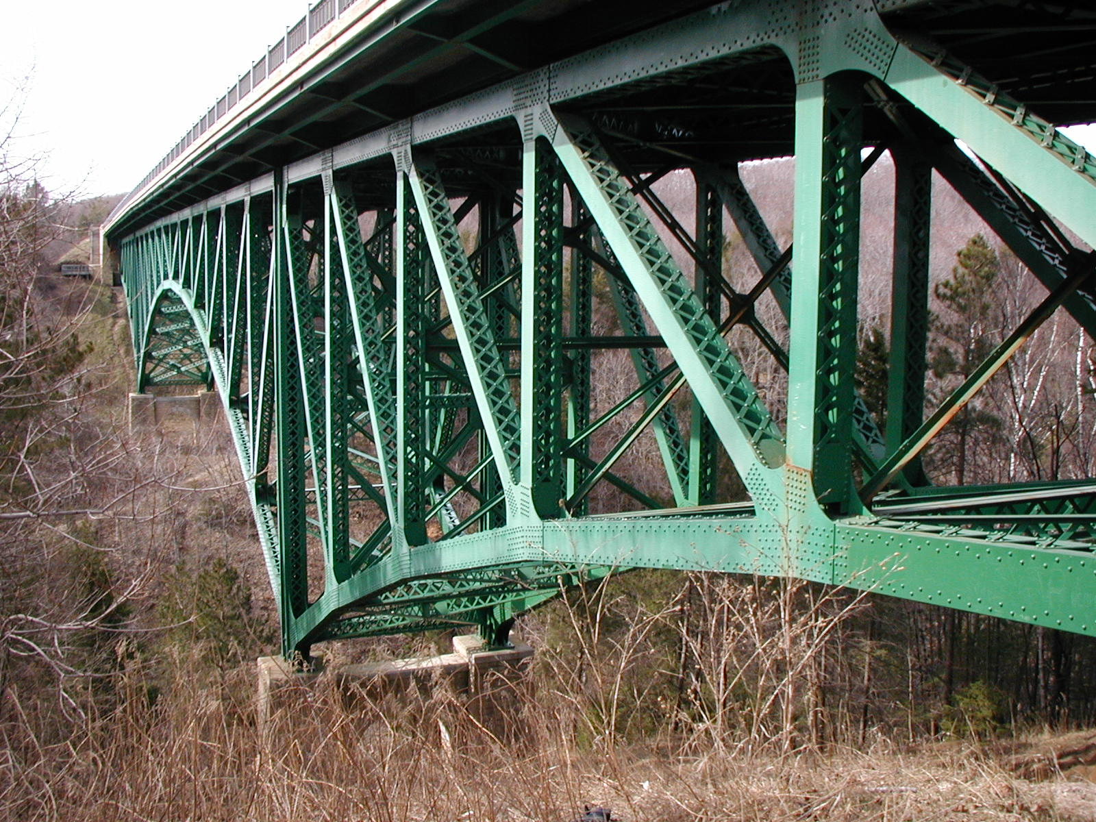 The Cut River Bridge Roadside Park on US-2 in the Upper Peninsula of Michigan is a good stop to walk around and get an up close view of a steel cantilever bridge. Parking available on each end.