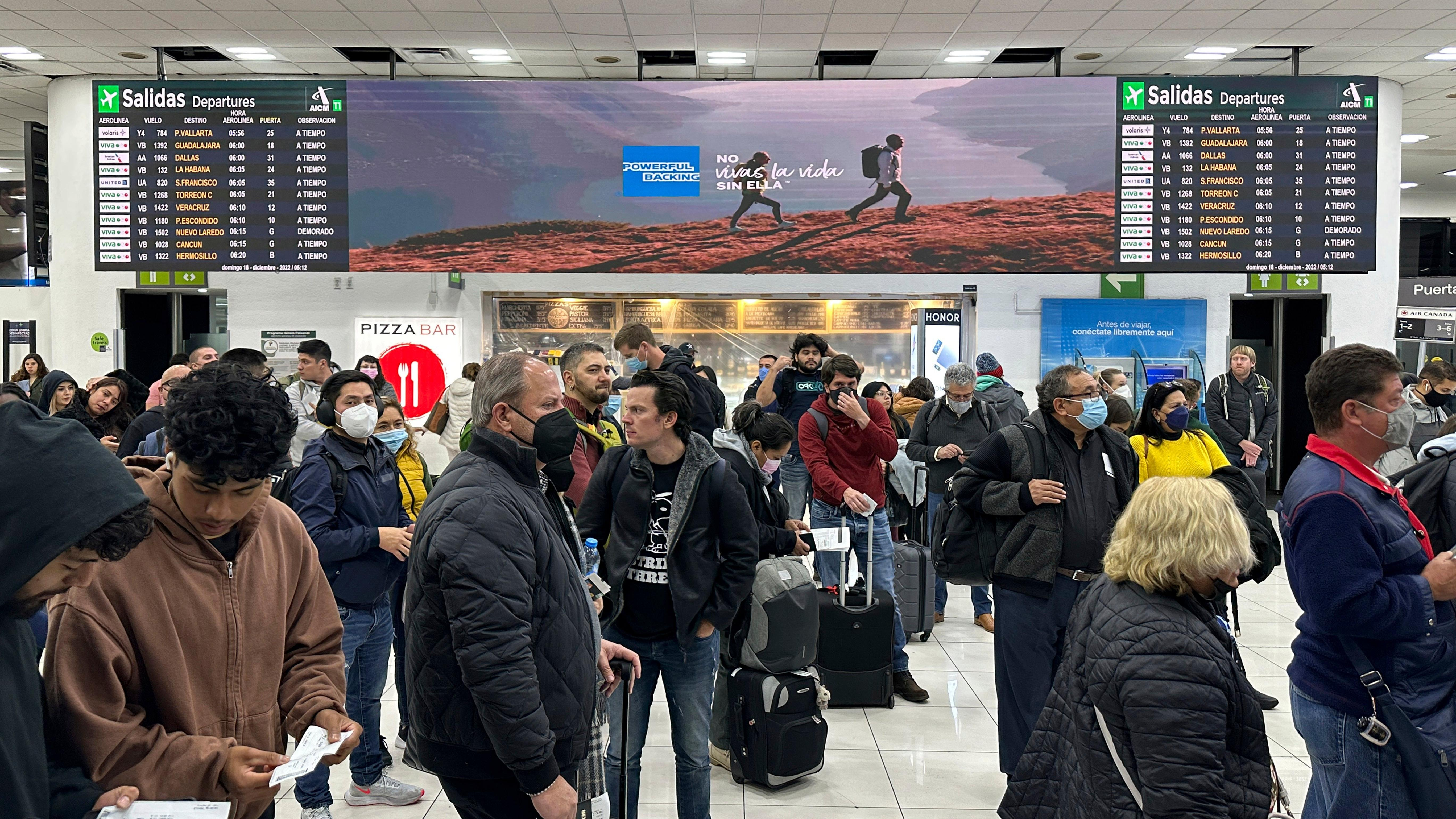 Time marches on. We're now told that the next flight is full, 100%, and we're not getting on it, either. The airline is happy to put us on a flight the next day, but because there are so many ahead of us, the flight isn't until Friday evening and we'll miss Son's birthday dinner in NY.