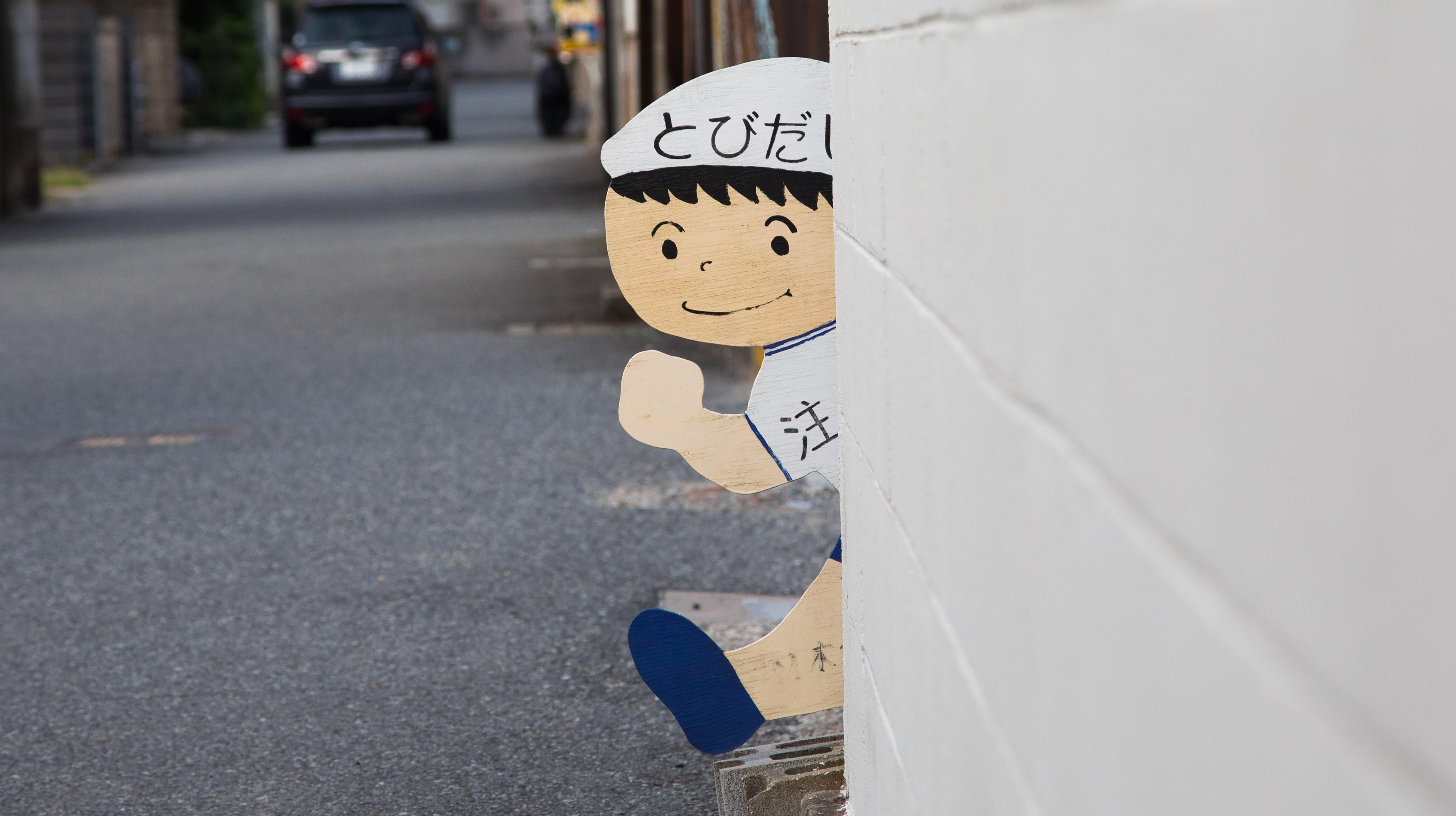 The first "running boy" sign was designed by Yasuhei Hisada for the city council of Yokaichi, Shiga Prefecture. The charming design included a young boy poking his head and part of his body out into traffic — a reminder for drivers to be aware of any foot traffic darting out into the roadway. The mascot quickly grew in popularity, becoming mandated by plenty of local towns and neighborhoods.