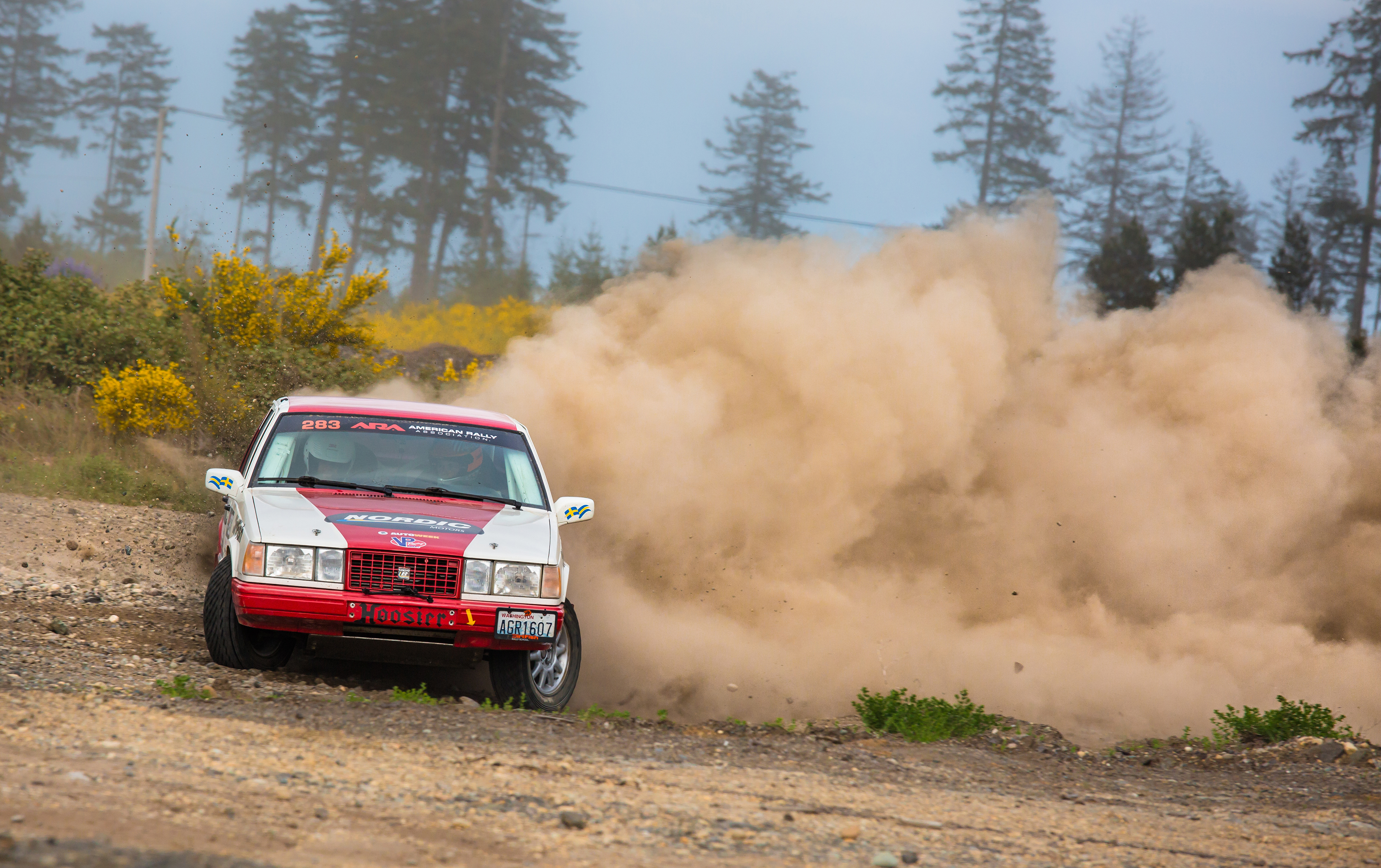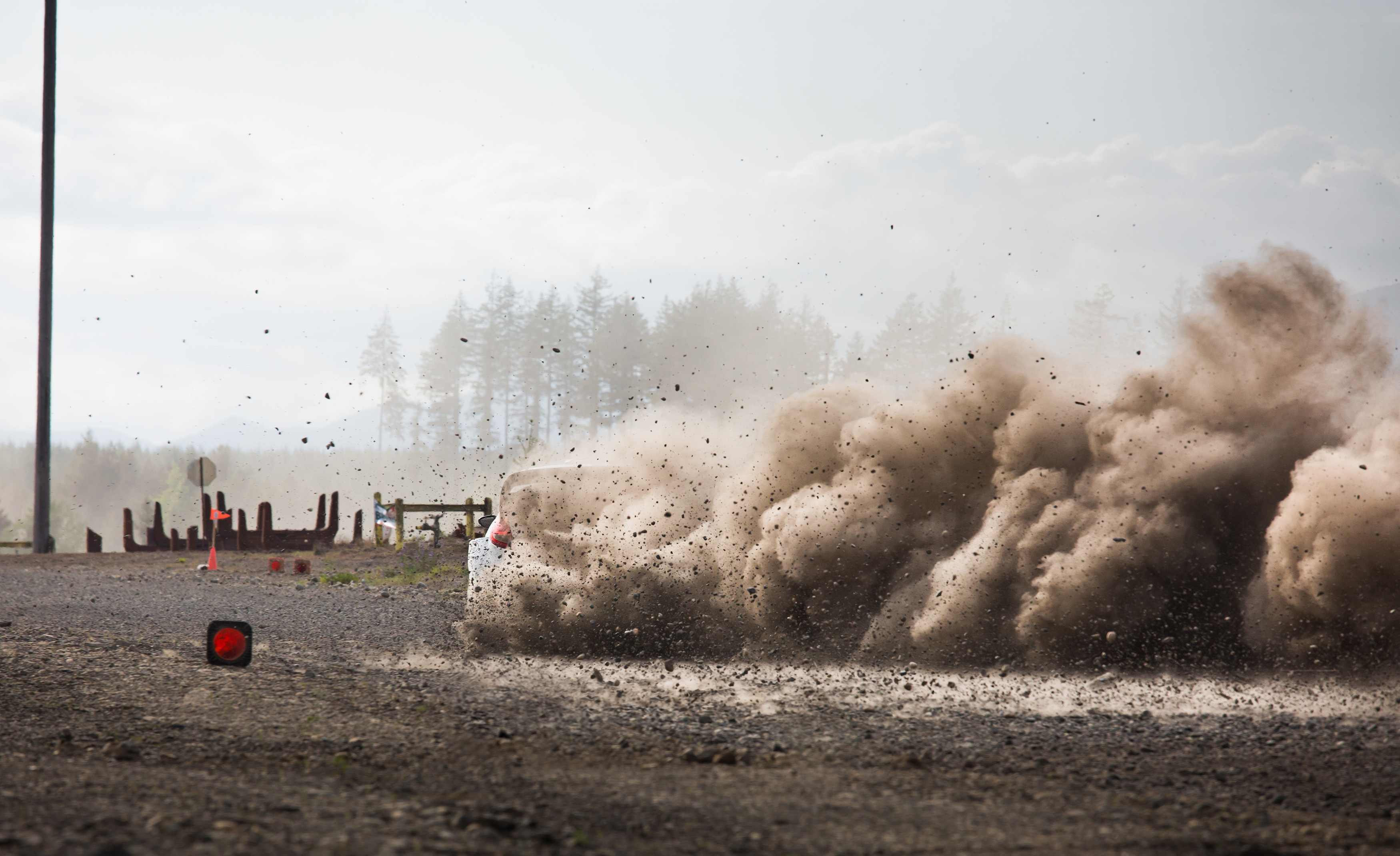 Nate Tennis of DirtFish Rally School is just having so much fun in this little red Volvo. Love the composition of this shot. When you're shooting live races, happy accidents like these are one in hundreds.