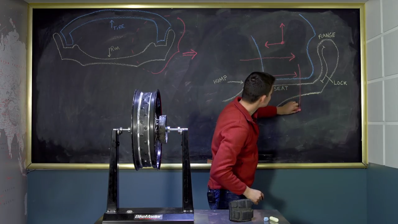"Each of these problem forces [need to be] be counteracted by two opposing forces for redundancy," the video explains. "We have air pressure squeezing the tire against the bead flange to stop it curling inward under corner force. We also have the bead hump, squeezing the tire against the bead flange to stop it curling inward from corner force."