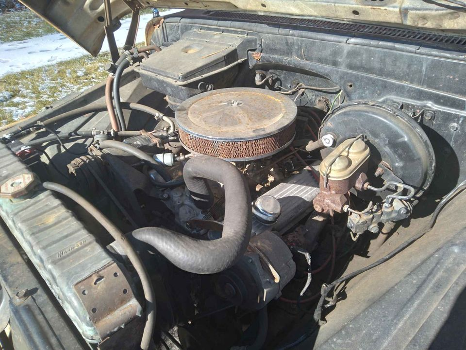 Oh god, this old Chevy is amazing. It's a rear-wheel-drive, short bed, "custom cab" C10 with a bench seat, small-block V8, three-speed automatic transmission, power steering, power brakes and air conditioning. It's the ultimate cruiser, and apparently, it runs and drives well.