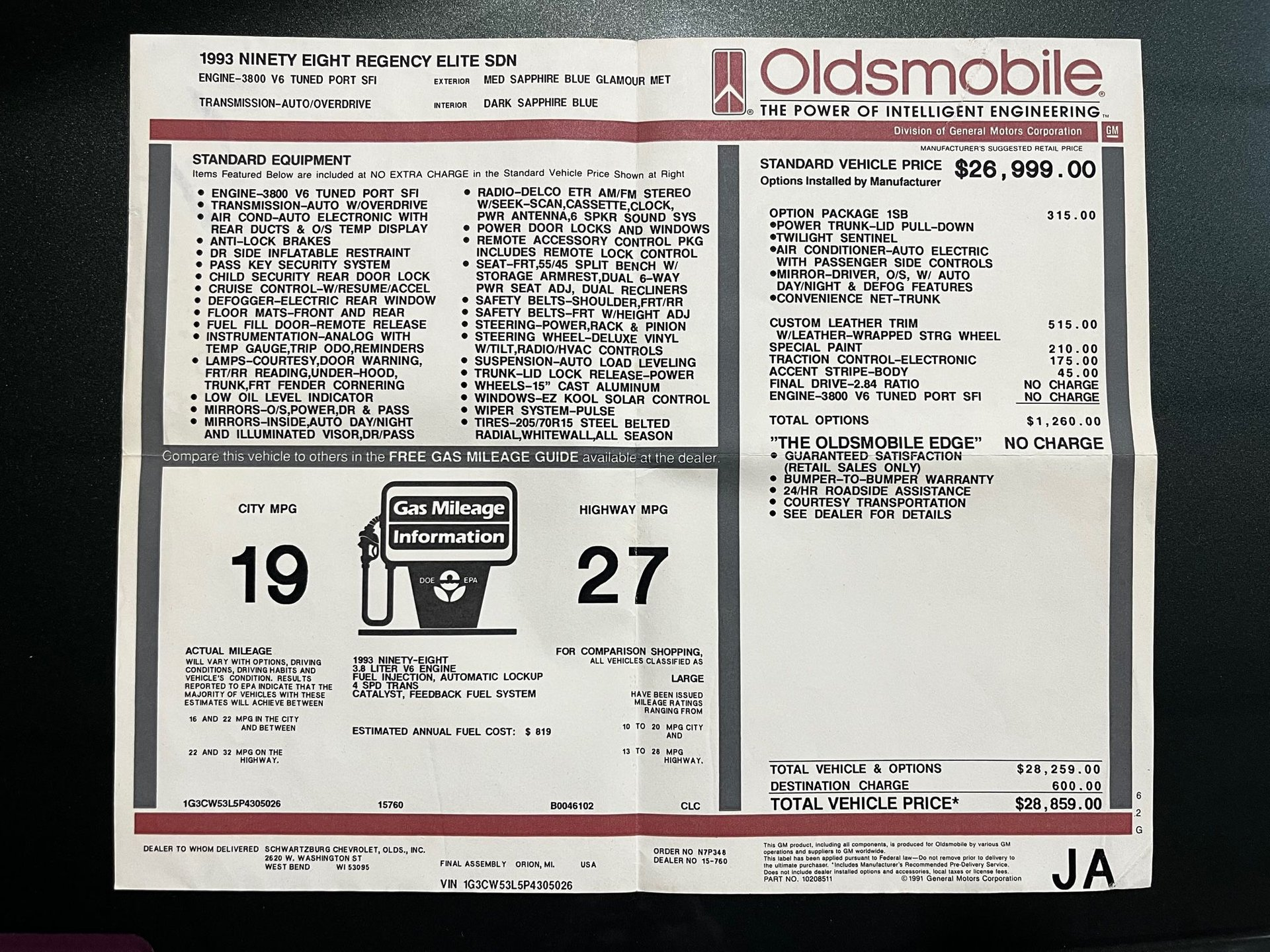 A 1993 Oldsmobile 98 Regency Elite with just 1,900 miles will cross the block at Mecum in Kissimmee, Florida later this week, and it's the most pristine example of the last gasp of 20th century American luxury you're likely to see anytime soon.