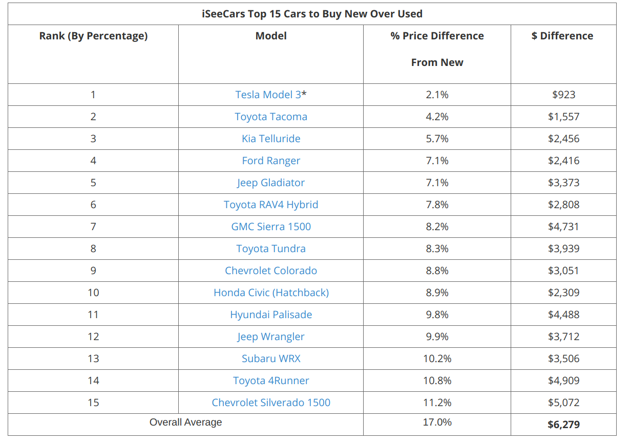 A classic bit of outdated car-buying advice that stubbornly prevails is that you should always buy used cars because new ones depreciate the moment you drive off the lot. While this is probably true for most cars, there are certain models that offer minimal savings in the pre-owned market. A study from iSeeCars highlights the models that are better bought new.