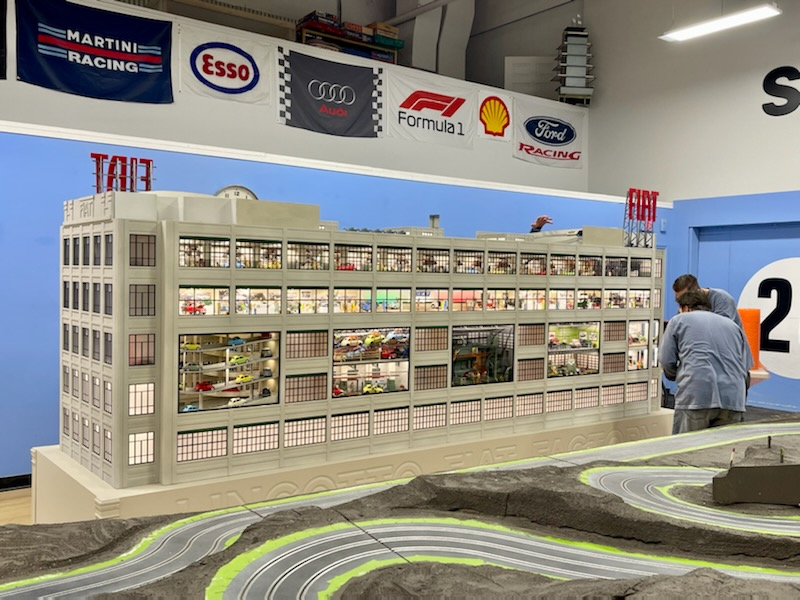 Today, the factory has been repurposed as a multi-use building with shopping, concert halls, and even a hotel. But some car work still gets done in the building. The eastern portion houses the Automotive Engineering faculty of the Polytechnic University of Turin. The track survives on the roof, and you can (and should) go see it should you visit Turin. A trip to Italy might be cheaper than a Slot Mods Raceway of your very own, but memories fade. A phenomenal slot car track is forever.