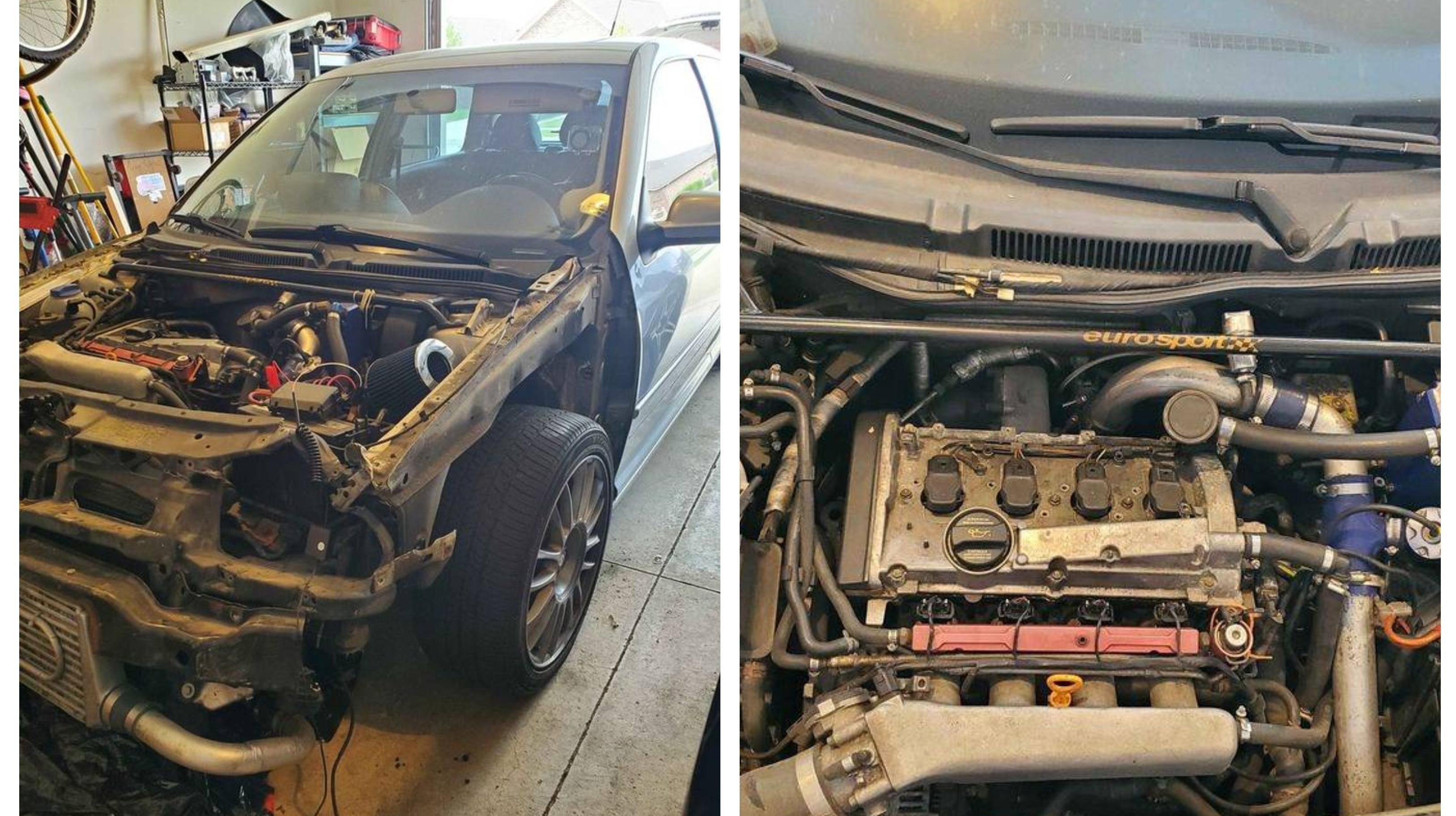 Funny enough, this GTI has already been in a crash, resulting in the removal of the front bumper, fenders and hood.
