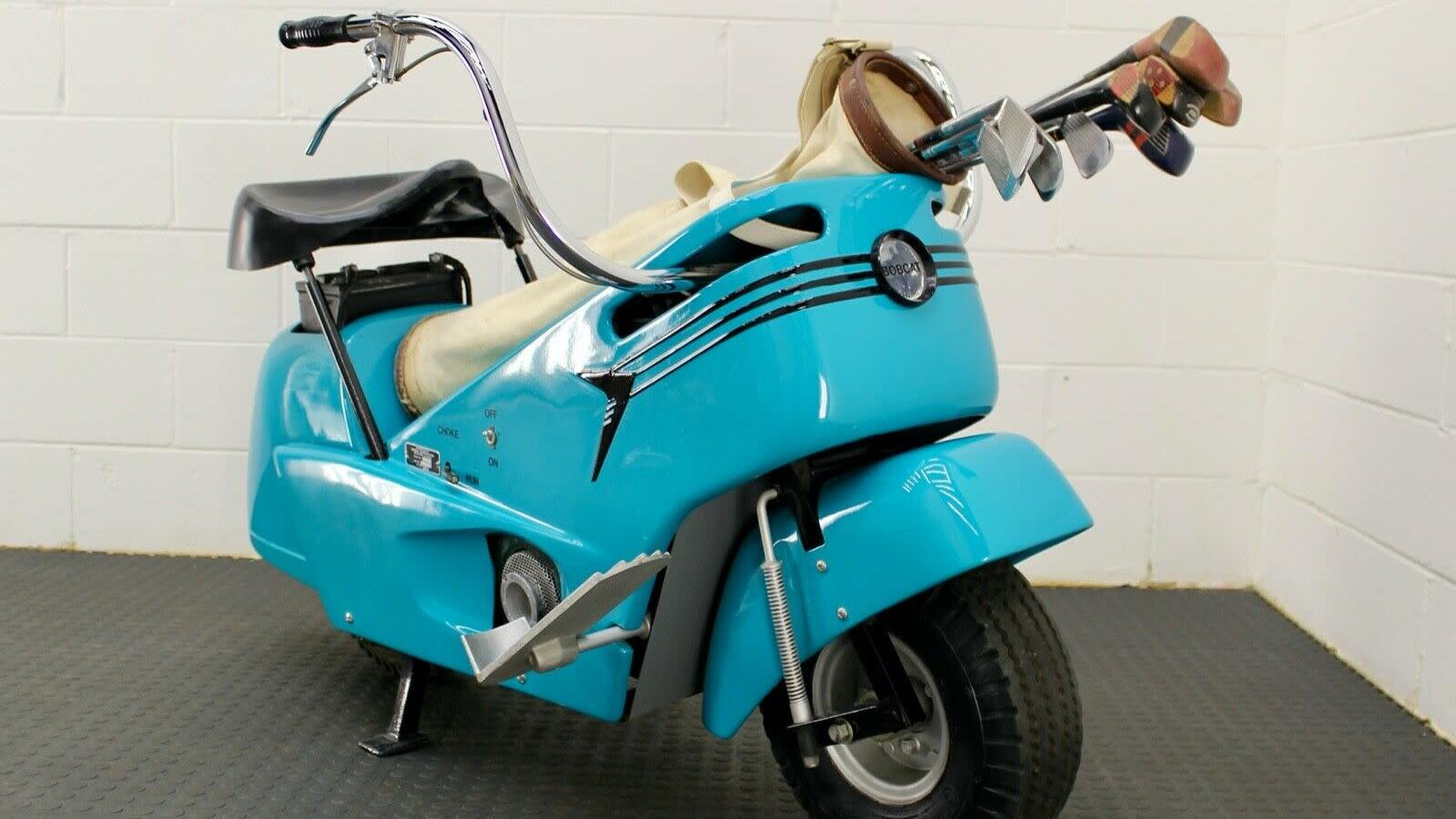 Unsurprisingly, these were quite expensive and extravagant, even for a booming middle class still high on the effects of post-war economic expansion. The idea of a personal golf scooter was common, but having one this level of upscale was beyond the idea of the average golfer. Few sold, and fewer still are in around in this kind of exquisite condition. You could get one a bit cheaper with a pull-start motor, and you could option your Bobcat 69 "compact" with outrigger training wheels, but none ever really captured the fancy of the American golfing public.