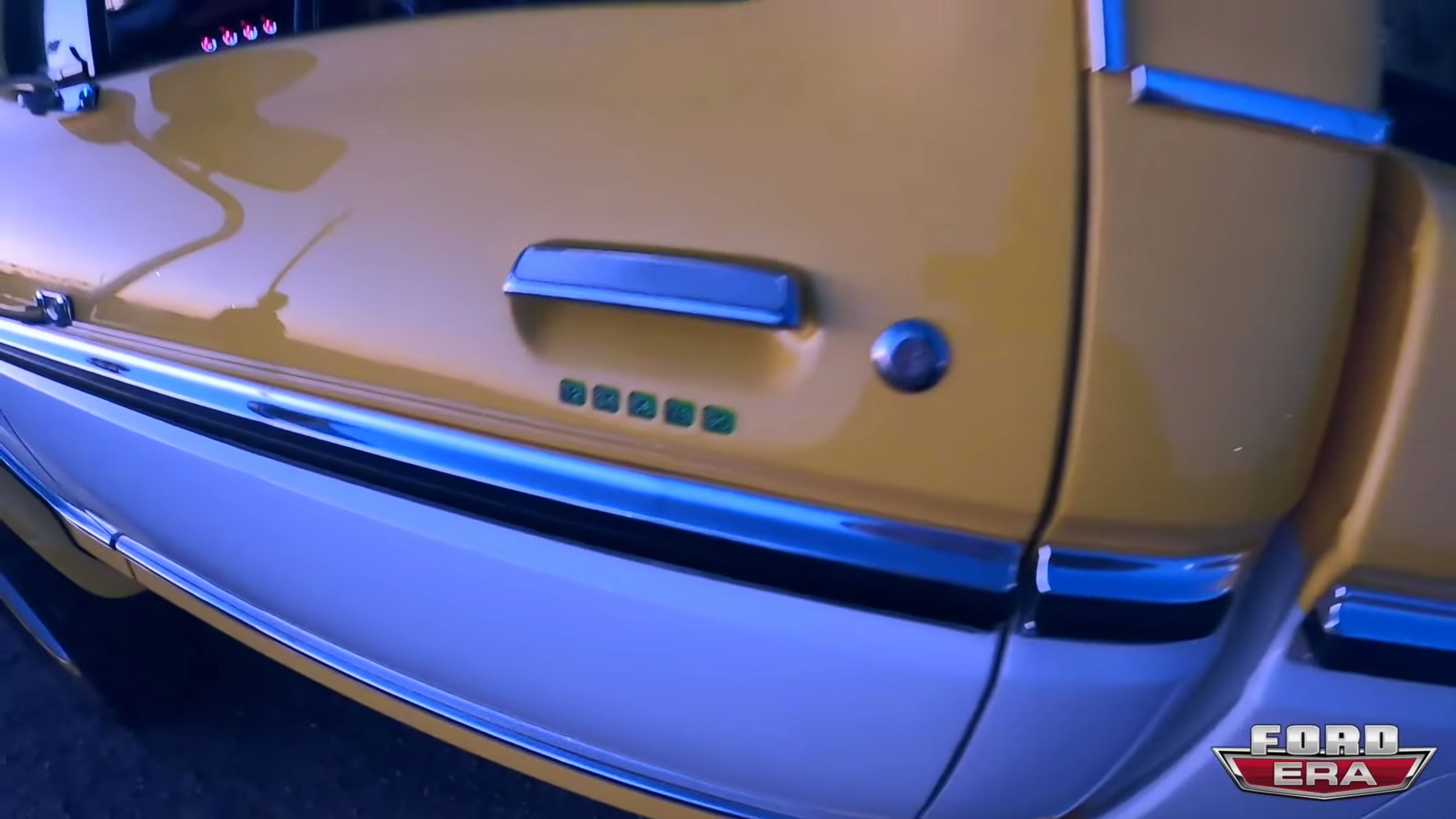 To make the old body fit on the new frame, Sweet Brothers had to stretch the cab four inches and cut the firewall and floorplans to modify them. Move to the inside, and you'll actually think that you're climbing into a newer F-150, because that's what this is. Even better, all of the amenities from the modern truck still work, including the heated and cooled leather seats, navigation and satellite radio, and even the unmistakable Ford door chime.