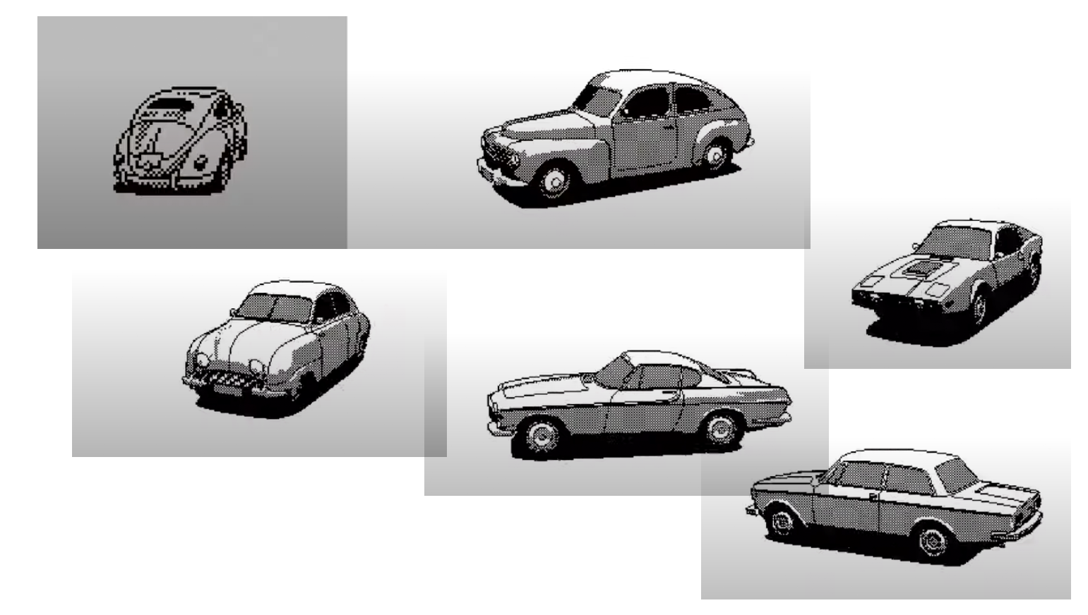 There are Oval-window Beetles, Volvos PV544s, 140s and P1800s, Saabs Sonnet and 92, and I'm pretty sure this screenshot shows a Renault Dauphine: