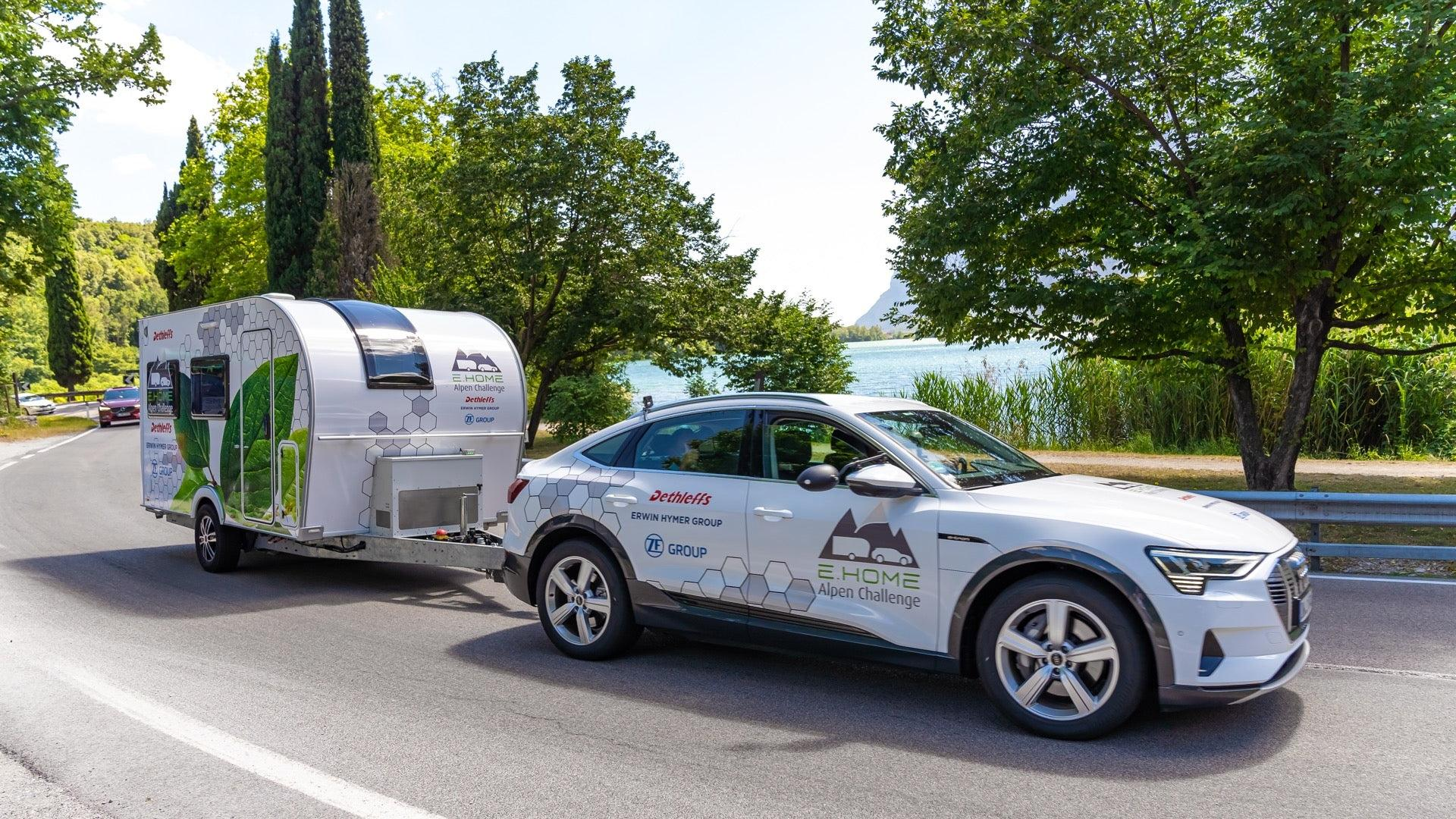 Last month, Dethleffs tested the E.Home on a 240-mile stretch crossing the Alps being towed by an Audi e-tron Sportback. The Audi has an EPA range of 218 miles, yet it completed the whole journey in just over six hours using 82 kWh of its 95 kWh battery. The E.Home consumed 74 kWh of electrons of its 80 kWh capacity.