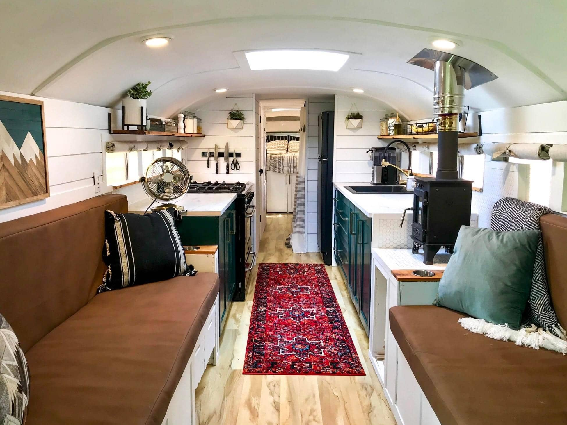 This Cozy School Bus RV Has Skylights And A Place To Wash Your Clothes