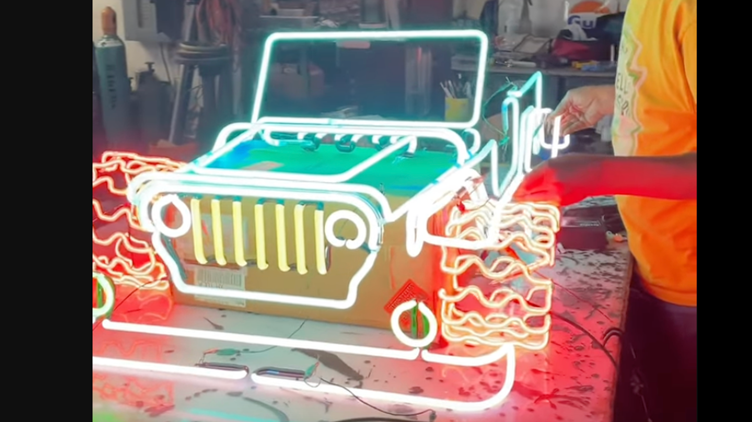 This Guy Building A Jeep Out Of Neon Light Is From The Good Part Of YouTube