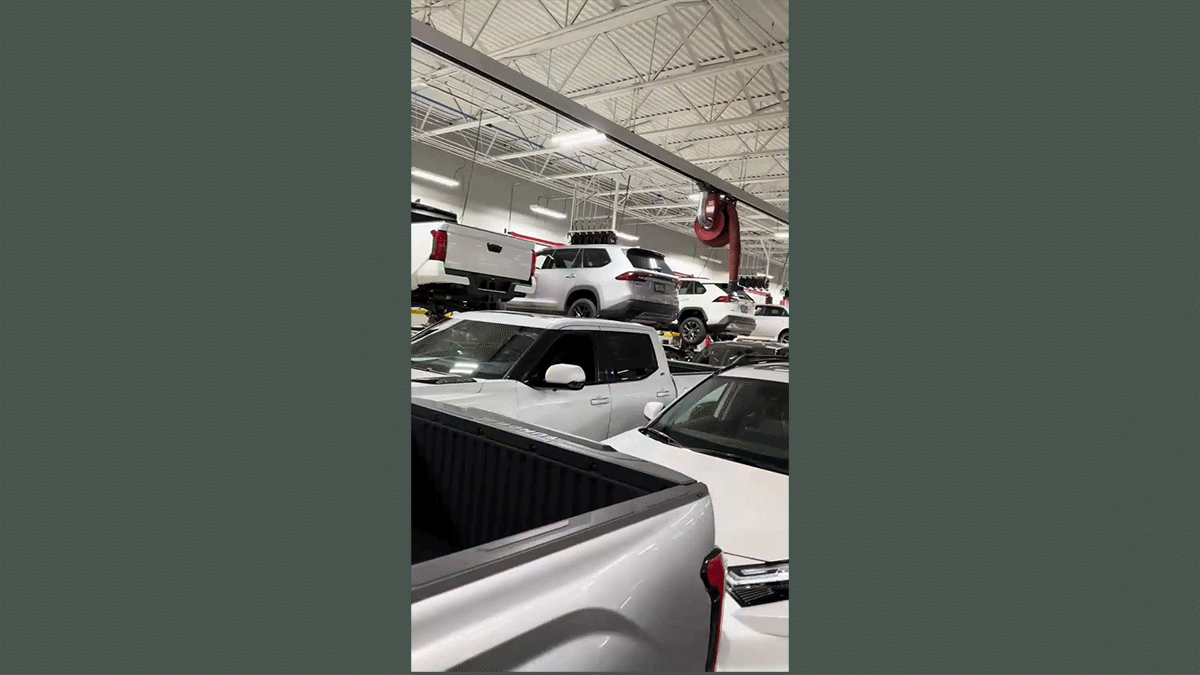Pretty quickly, the small-ish showroom floor fills up, so employees begin moving larger cars – like Tundras, Sequoias and Tacomas – and used vehicles to their massive workshop. They even stack cars on top of each other using lifts. It's a really wild sight to behold – that many brand-new cars hunkered down in a building.