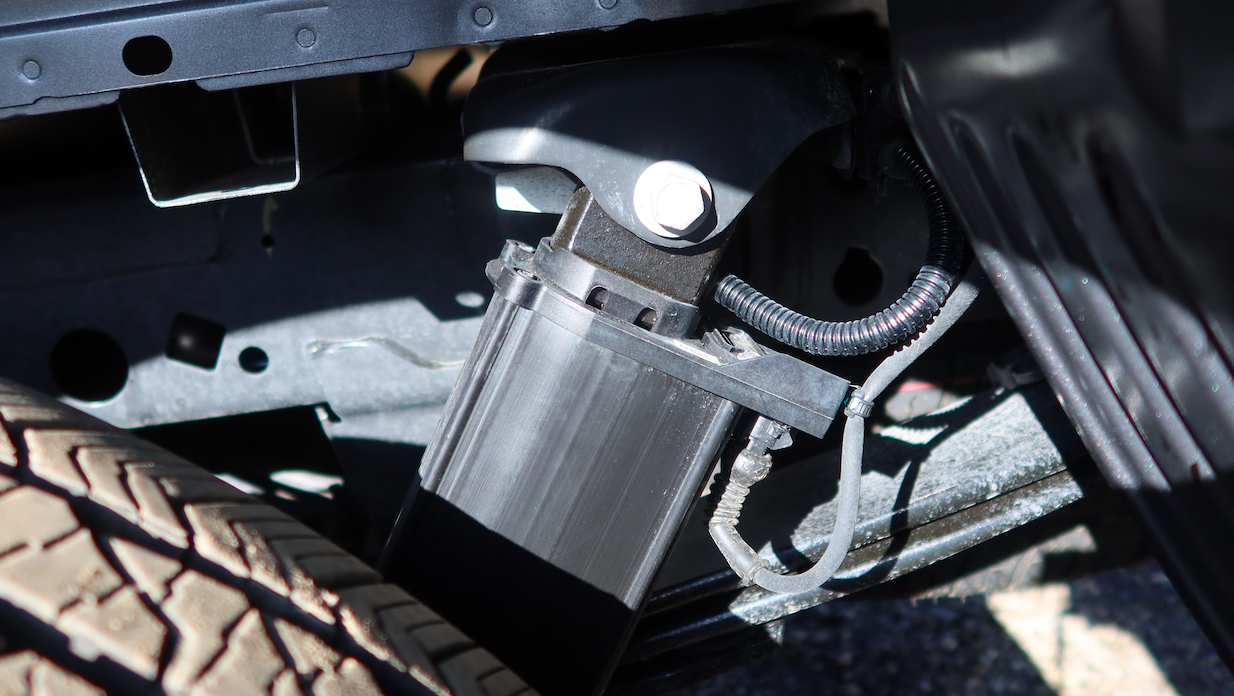 Damping force is used to control unwanted motions such as bounce, pitch and roll reducing the severity the truck – and its passengers – will feel from traveling through the pothole. When the edge of a pothole is detected, the dampers firm up, preventing the tires from dropping as deep into the hole. Tuning can be adjusted by selecting any of the available drive modes.