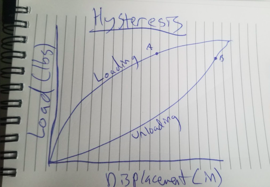 Essentially, what it describes is how, when you load up a system, you may get a certain displacement, but when you remove that same load from the system, it won't necessarily return to its starting point due to losses from friction. So you can have an instance where the exact same weight in a truck bed gives you two different displacement readings from the ride height sensors (illustrated by A and B above, though the curve above isn't representative of the system, it's just there to illustrate a concept). So how do you come up with a good correlation between ride height and load? Well, you have to consider time.