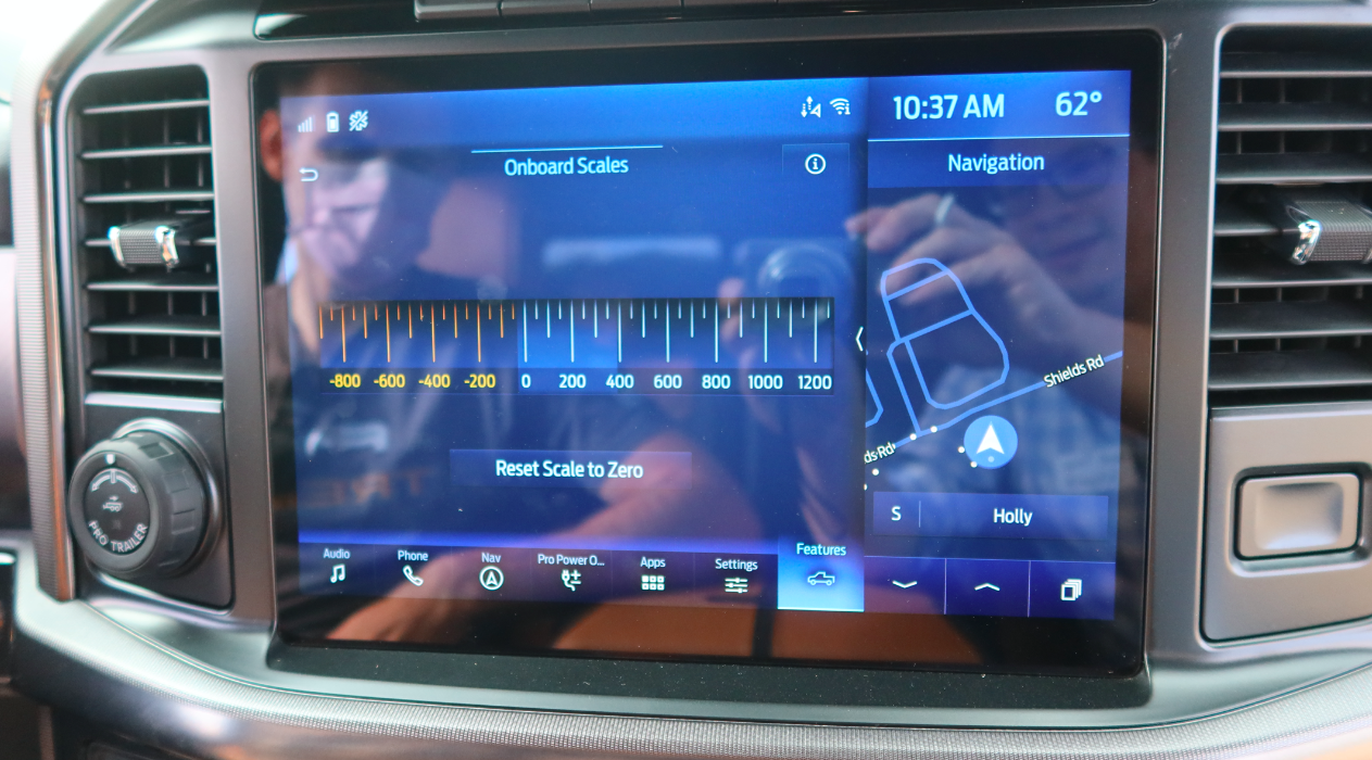 What about the location of the weight; does that matter? Isn't that going to change which sensors read what? Well, for Ford's system, the location of the weight isn't really relevant, since Onboard Scales just gives an overall truck payload figure. "We have sensors in each corner, and that helps us identify where the weight is loaded...the only information we provide is overall load. Rather than doing it individually per axle, we just add up the overall number," Rivas said.