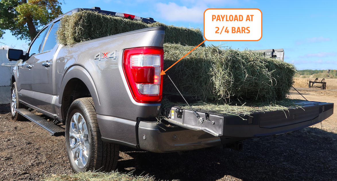 With Onboard Scales, you want the taillights to remain below four bars (the lights will blink once you hit the payload limit) while with the Smart Hitch feature, you want the center two bars to be lit (the lower bar will blink if the tongue weight is too low, the upper if it's too high — see below).