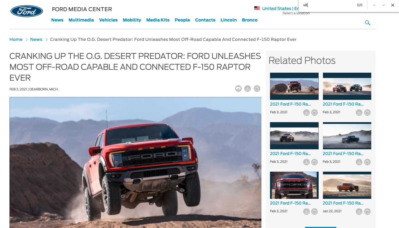 I'm going to fill the rest of this story out with details on the new 2021 Ford F-150 Raptor, which gets new, big-ass 37-inch tires, upgraded suspension and a slew of other tweaks. But for now, I need to get the news that the V8 is coming out the door. To delay any further would be a crime against humanity.