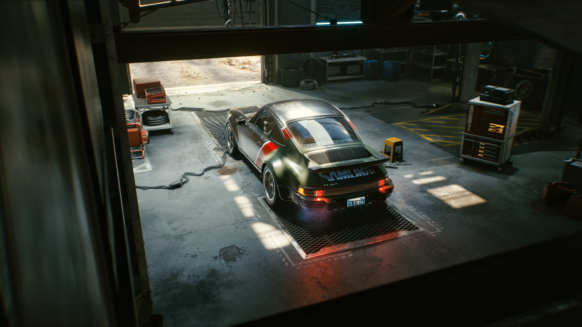 The Cyberpunk 2077 Porsche has retained its classic look, but has been adapted to the reality of the game. Elements have been added that would allow the vehicle to be approved in the futuristic reality of the 2020 Cyberpunk — at a time when Johnny Silverhand was walking the streets of Night City. So the car has a lidar attached to the front, a set of sensors and elements to identify the vehicle from the air (the police in 2077 use AVs, air vehicles), and has electronic mirrors with monitors inside the vehicle. However, the body of the car, its interior, and even the engine have been reproduced 1:1 — the legend does not change.