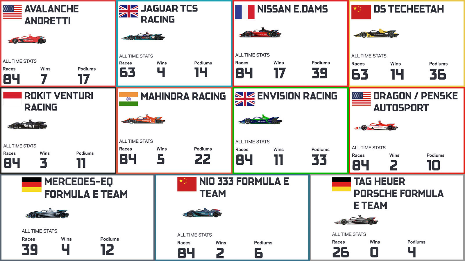 The departure of Audi means there are now 11 teams on the Formula E grid, each fielding two drivers. Defending champions Mercedes-EQ line up alongside Formula E heavyweights such as Jaguar TCS Racing, DS Techeetah, and Envision Racing.