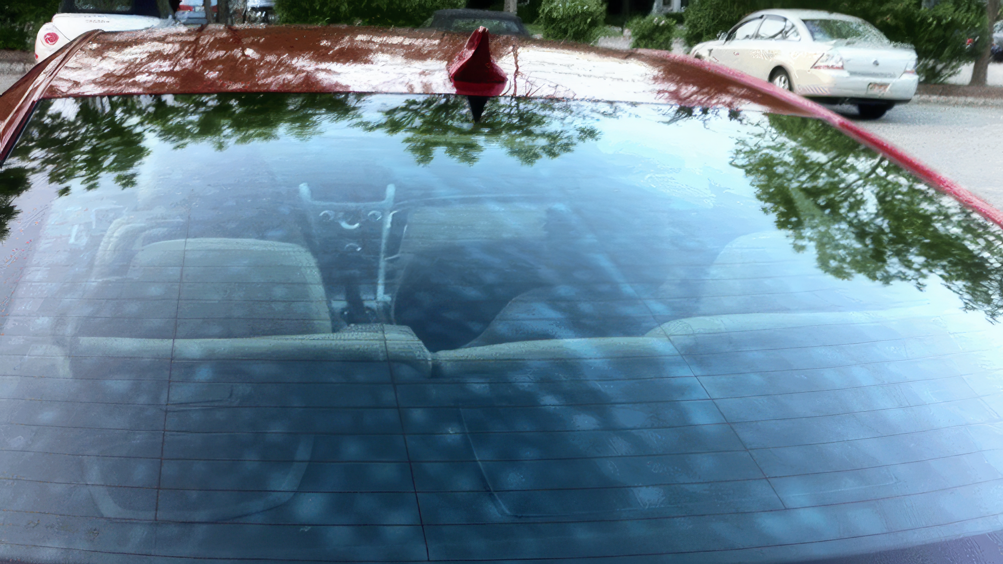 Those spots, officially referred to as quench marks, are ultimately the result of how the light reflects through the rear window. Most vehicles use tempered glass for the rear window. During the manufacturing process, the panes are heated to over 1,000 degrees and then quenched to strengthen the glass. However, the quenching jets can't uniformly cool the panes, according to glassmaker Pilkington North America. The uneven cooling causes uneven shrinkage and density across the surface, leading to uneven light reflection.