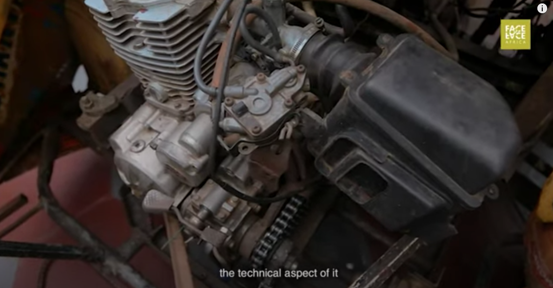 Kelvin lives in Accra, Ghana, and grew up without much in the way of wealth or material resources, but with what seems to have been a lot of support from friends and family, and a good amount of scrap materials to salvage.