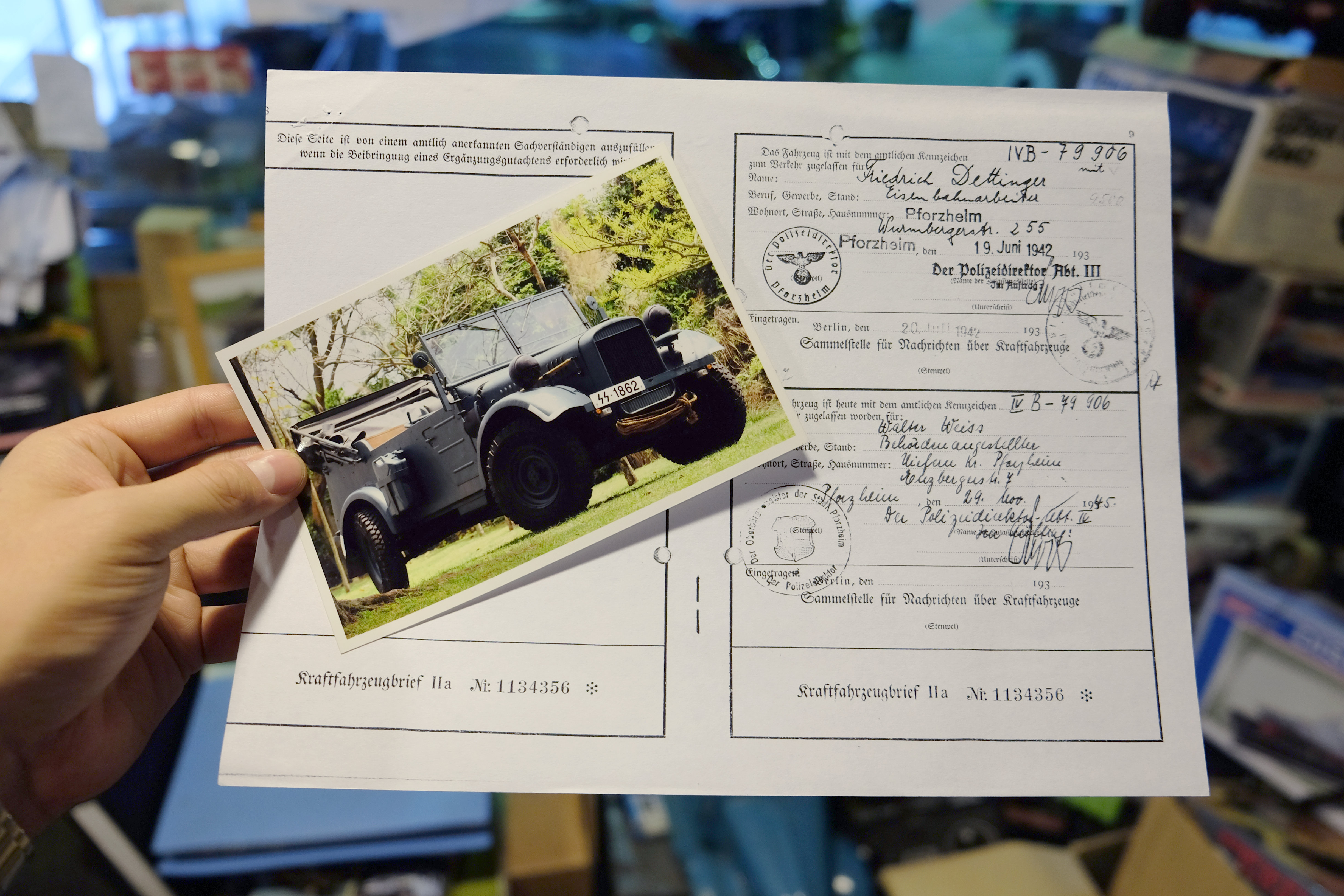 After showing us his Dakar photos, Victor took out some pictures of vehicles that weren't at his garage for us to see, but that he considers his prize possessions. The first, which also had accompanying documentation, was a 1937 German Kfz PkW 4x4x4 Funkkrafwagen prototype, which Victor considers one of the most modern vehicles used before and during World War II thanks to its four-wheel drive, four-wheel steering, three self-locking differentials, coil-sprung fully independent suspension and five speed gearbox.