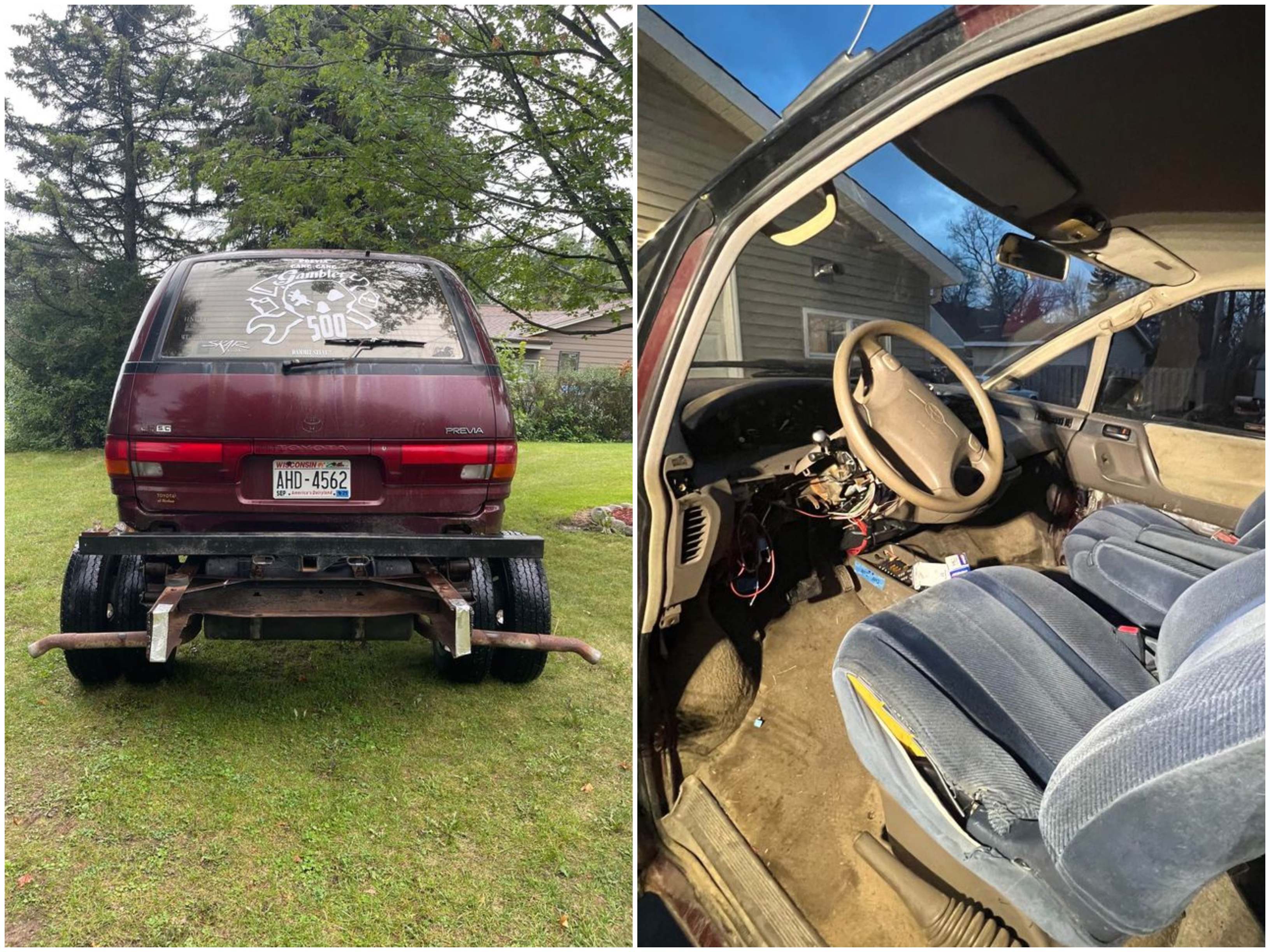 The seller of this creation starts the story by telling buyers that this van was once a desirable supercharged Toyota Previa. Before the van tried to cross a foot of water it housed a Toyota 2TZ-FZE supercharged four in the middle. These vans are adored by JDM enthusiasts for their futuristic space egg looks, interior layout and if you can find one, manual transmission and all-wheel drive. They've also become cheap enough to become quirky off-road rigs for people participating in Gambler 500 rallies.
