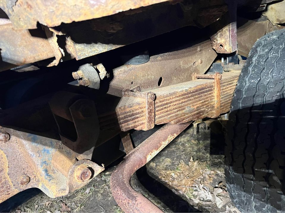 The seller rightfully points out that any poor soul riding atop the 16-leaf spring-supported rear axle is bound to meet the headliner more than once.