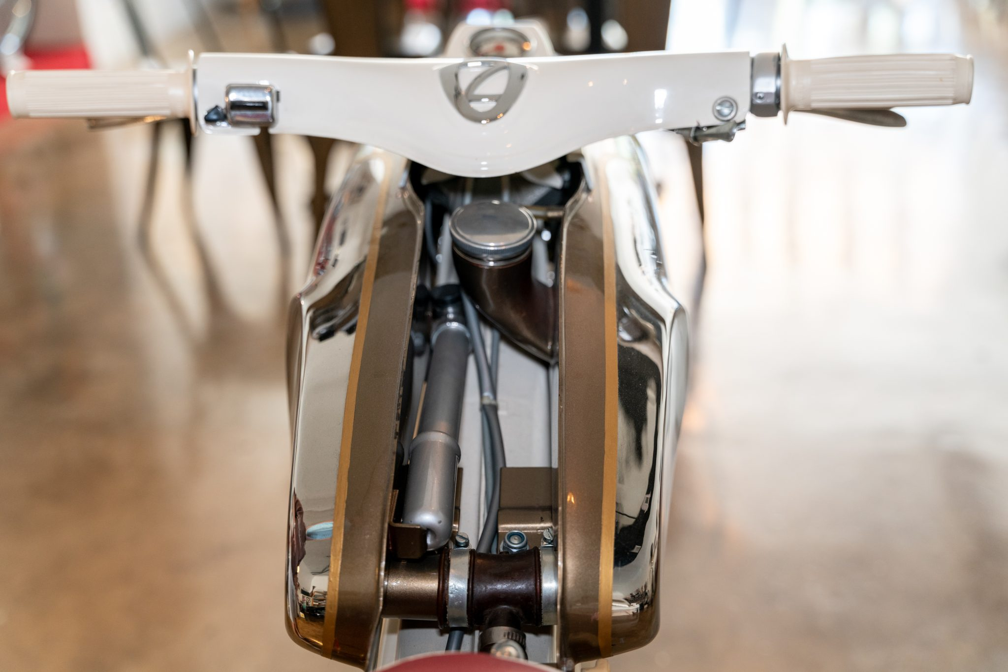 How good is it? It won a best in class at the Boca Raton Concours d'Elegance in February 2020. The seller says that this paint is original and the moped has only seen a refurbishment before they got it. Over 56 years in this shape is amazing. Part of that is because it hasn't been ridden since the seller got it. Instead, it was displayed sans fluids.