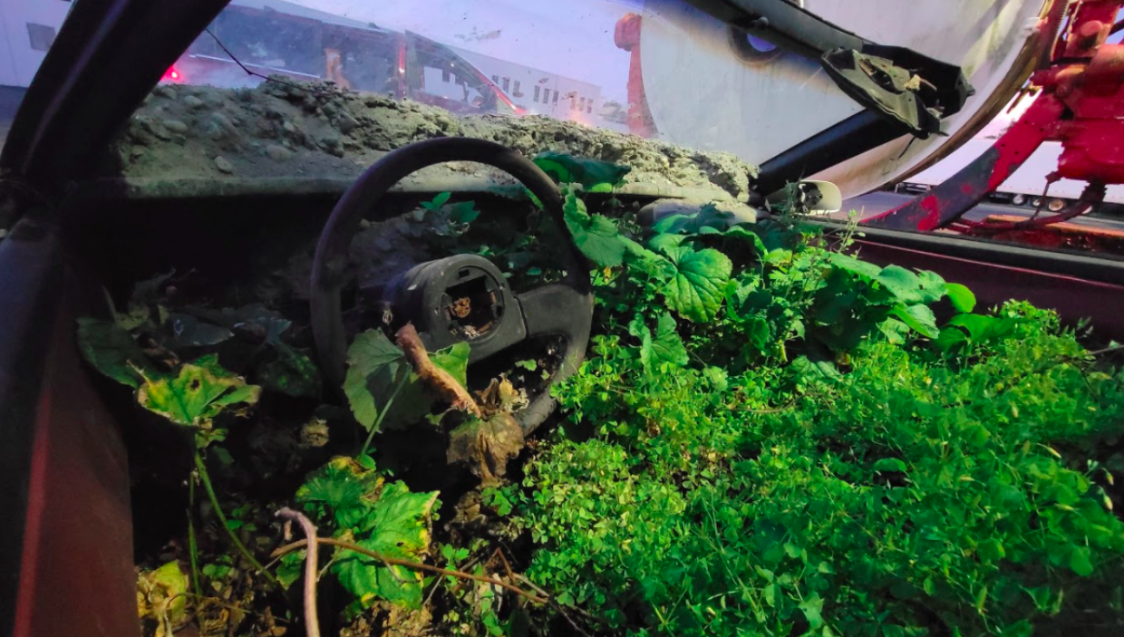 The biggest mystery, aside from all the plants in the car, was what was on the dash. "What I could NOT figure out," Cooper concluded, "was the concrete(?) up above the dash in the window...So. Many. Questions."