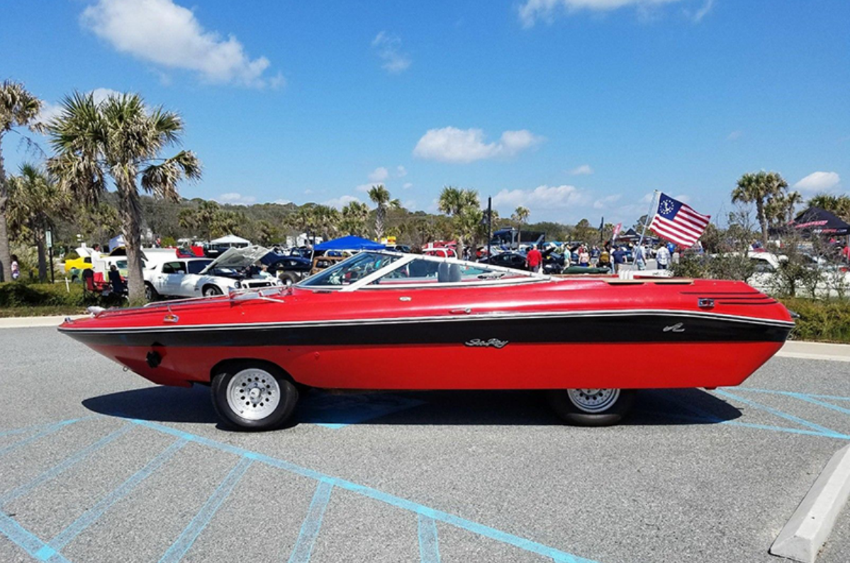 In 2015, Ray would start dreaming up wild vehicles, starting with the Boatcar. The Boatcar meshed a 1994 GMC Jimmy together with a 1997 Sea Ray Bow Rider.