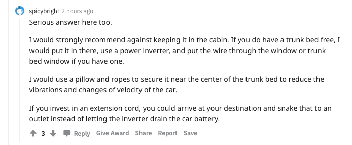 A lot of commenters seem to have come to a similar conclusion, and suggest a case of beer would solve this, or maybe just leaning in and smoking some meat in the cab as well.