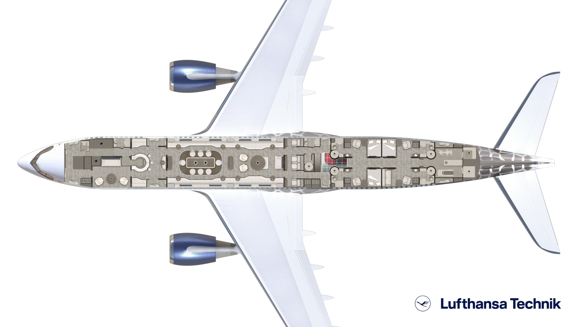 The concept is so comical I feel like it could only be the ride of some outrageously evil movie character. And it requires about the same amount of money as a movie villain, too. Lufthansa Technik says that the 12-passenger version seen here would cost $100 million on top of the initial cost of the plane, which already costs a quarter of a billion dollars. You could buy a bunch of hotels for this price, but I guess none of them fly.