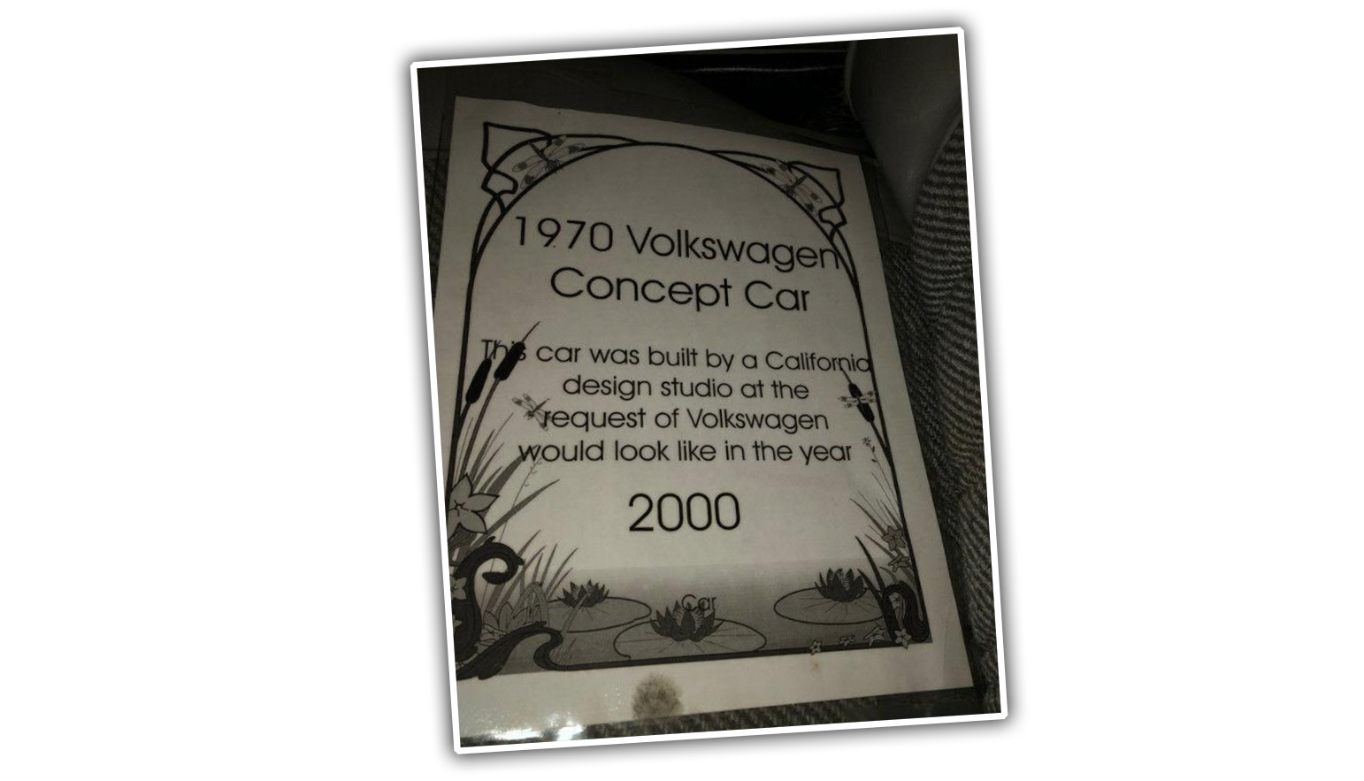 So, maybe it was owned by a movie prop company, or something similar. At some point after that, I think it must have been sold again, and that person may have been aware of VW's Auto 2000 project and decided to tie this unusual little car to that project, but backdated to have the mechanicals make more sense.