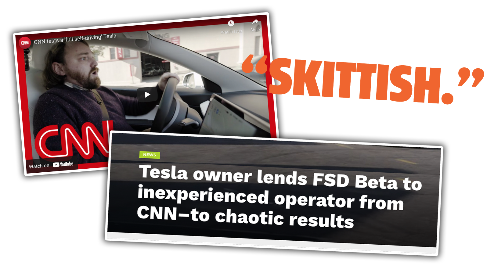 Remember, no wrecks happened in that CNN video. The outcome was the same as so many other full-Tesla-owner-shot FSD Beta videos, in that the car drove around on its own a bit, it had some moments that required disengagement, maybe some surrounding drivers got confused or pissed a bit and everyone got home fine.
