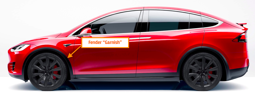 "[The fender garnish] will just come loose after enough dirt kicks it," Sonnad said, admitting that he's not exactly sure why this Model X had them replaced, but he thinks perhaps they fell off or broke.