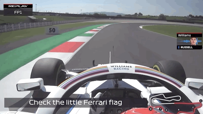 My favorite detail is when Russell instructs viewers to keep an eye on trackside flags to detect wind direction and speed — something I assume drivers don't do every lap in the actual race, given that there are lots of other things going on. But it is something I imagine all of them do for qualifying, when they're simply trying to run the quickest lap possible.
