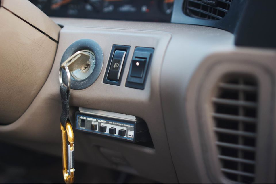 Up front, the driver has what appears to be a third-generation HKS Turbo Timer.